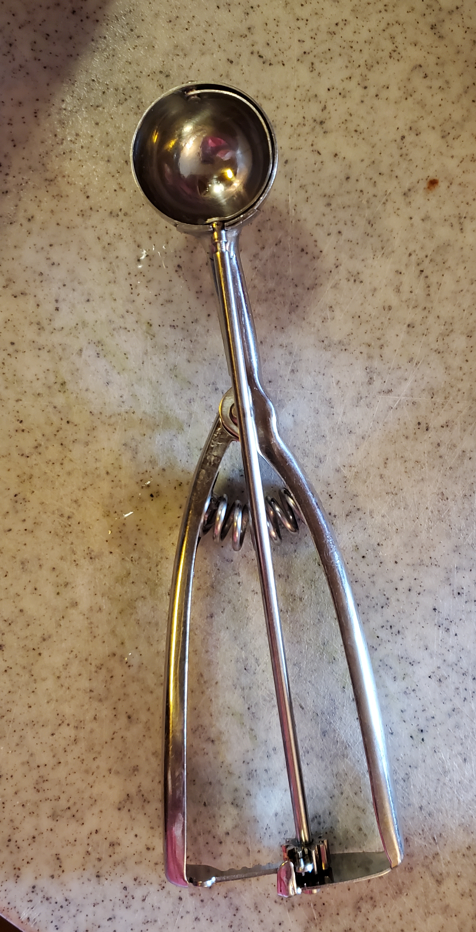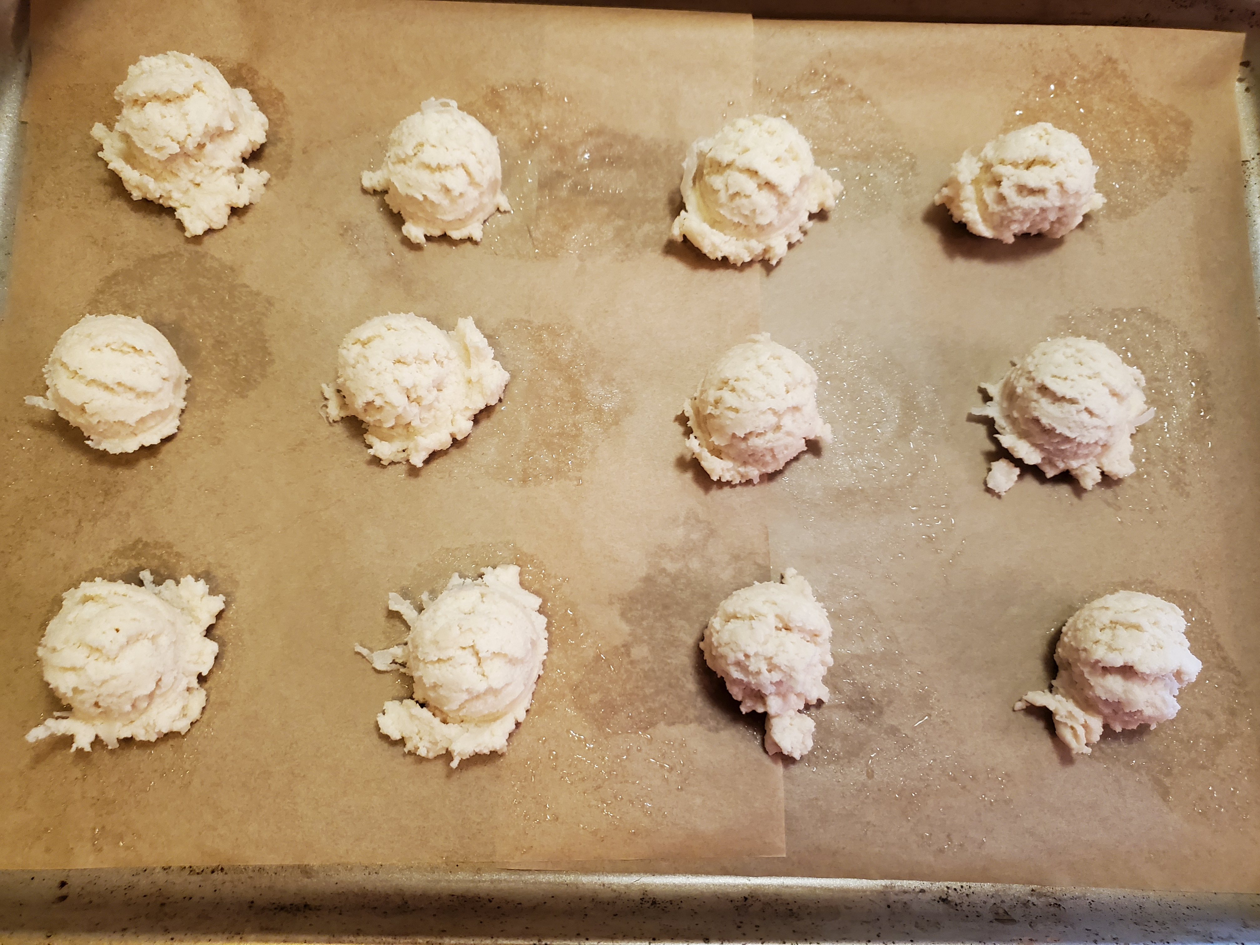 Carla Hall’s recipe calls for you to use approximately 2 tablespoons of dough, but as usual I like to use a small cookie scoop. Now, my definition of small and yours might vary. I found this website of Cookie Scoop Size Chart that will give you an indication of what size scoop you want to use. Unfortunately, my scoop doesn’t have a number stamped on it, but the one I use measures about 1-1/2 inches in diameter. This size scoop yields a nice one or two bite cookie.