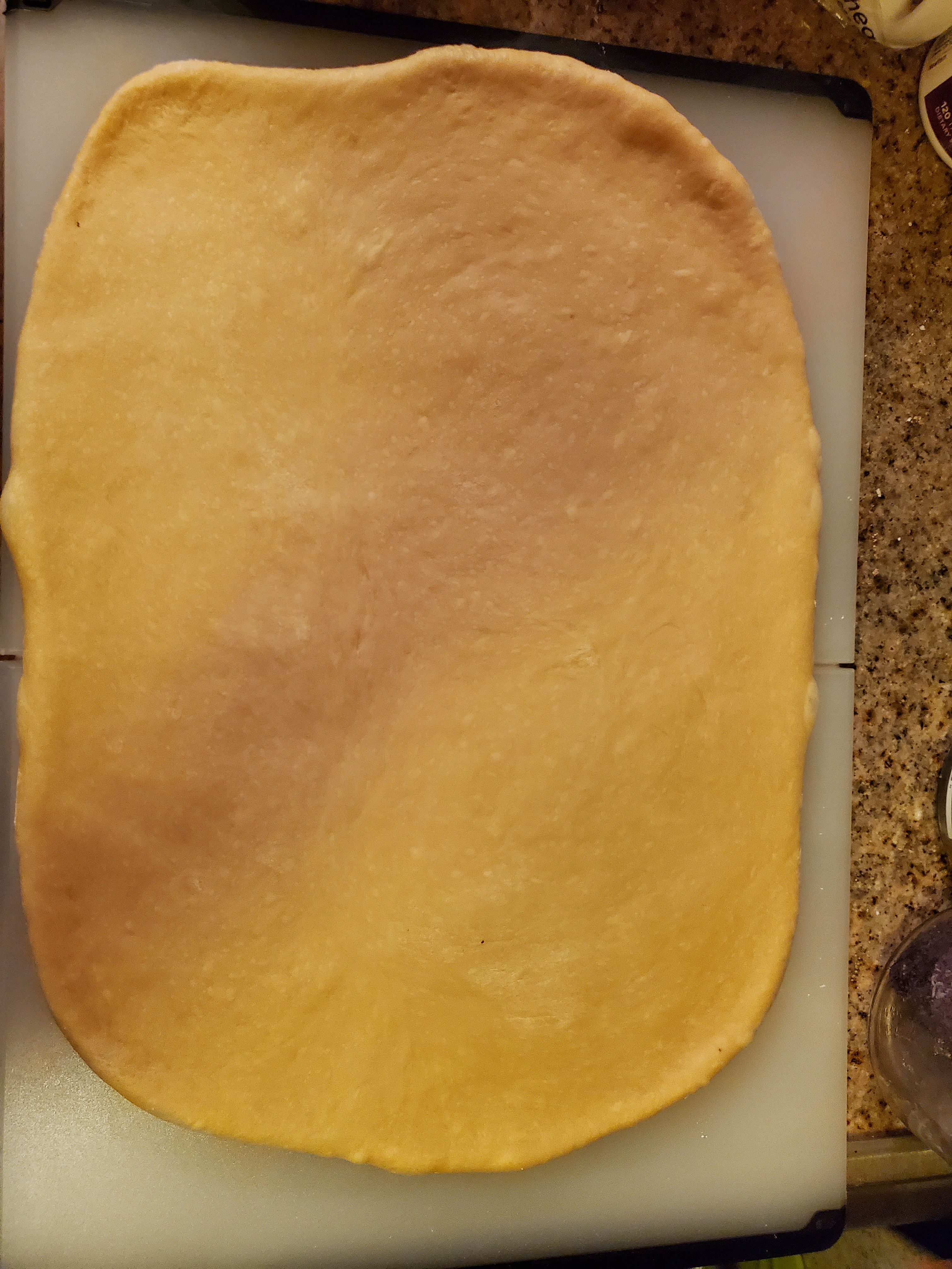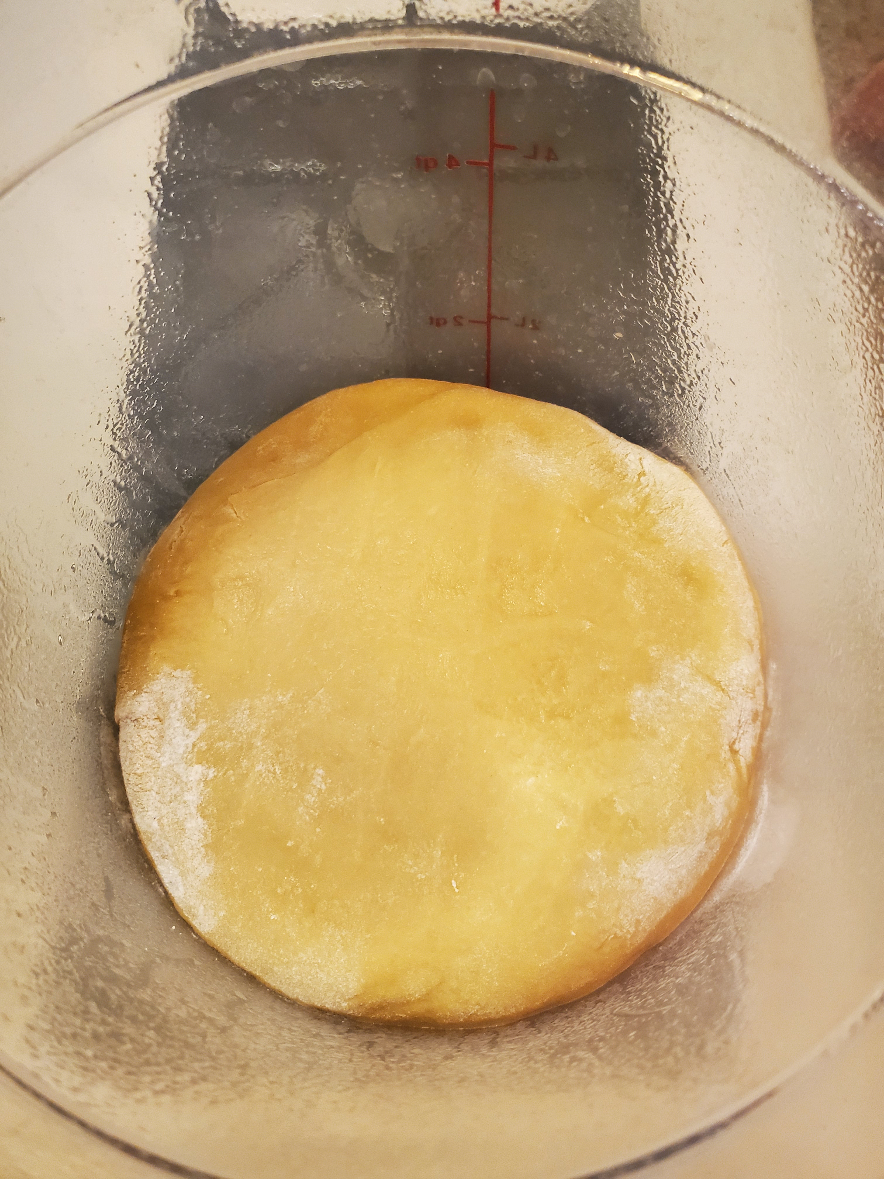 One problem I have always had is that most of my mixing bowls are metal, so plastic wrap doesn’t stick to it, so I never get a good seal to cover my dough. I do have a large measuring bowl with a plastic lid, but years ago my dog got a hold of the lid and chewed a few holes in it. My suggestion is to invest in a proofing tub from Amazon, because it also has a ruler on the side, so you can tell when the dough has doubled in size. Now according to the recipe, the dough should double in about an hour. I waited the hour, and nothing. I waited another hour and the dough still hadn’t risen. I did have my air conditioning on, so I thought maybe my apartment was too cold, so I took the quilted cover for my stand mixer and put it over the proofing container. Another hour passed and still no rise. By this time, it was 11 pm and I was about to give up again. I was so frustrated, because I had wasted 6 cups of flour! But then I thought, what do I have to loose, I will go to bed and see what has happened in the morning. To my utter surprise, the dough had doubled.