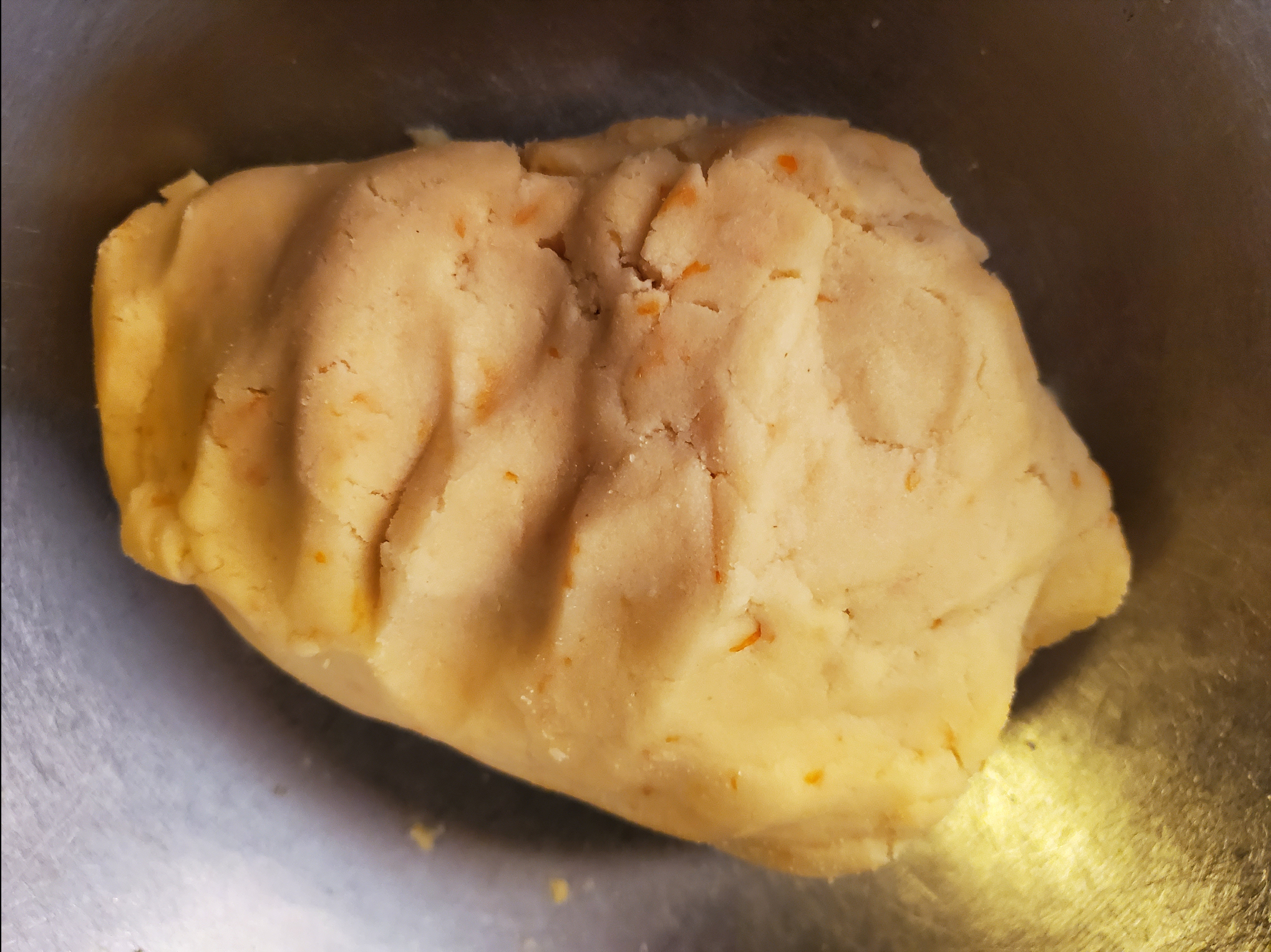 Once you add your dry ingredients, you may find that the dough may be a little dry and won’t come completely together. If this is the case, you will want to add either additional Cointreau, juice or water a tablespoon at a time until you no longer have dry bits hugging the bottom of the bowl. Lay out a sheet of plastic wrap or parchment paper and scoop the dough onto it. You may want to split the dough into two separate pieces to make it easier to chill the dough in your refrigerator or freezer. The dough should be chilled for a minimum of three hours. If you are able to work with the dough in that short time, place the dough in the freezer. If like me, you made your dough late at night and wouldn’t be baking it until the next morning, you can chill the dough in the refrigerator.