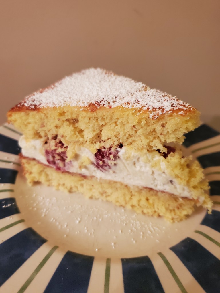 Before serving, dust with Confectioner’s sugar or top with additional whipped cream and lemon curd and berries.