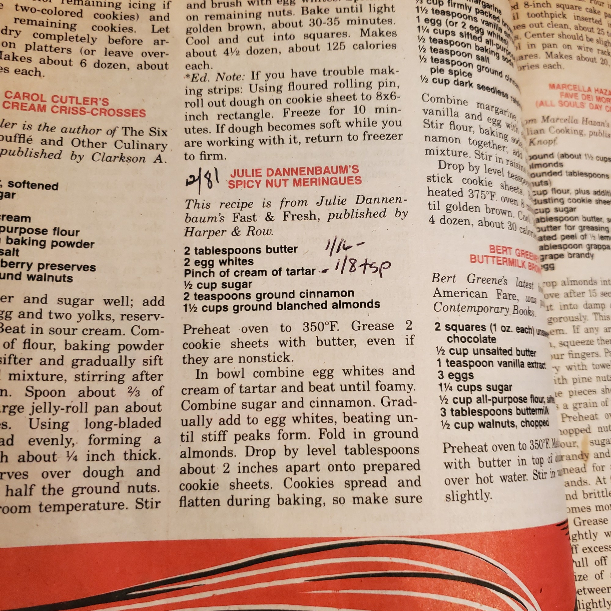 I’ve seen in most the baking shows I’ve watched the contestants making gingerbread. Most times it’s been structural gingerbread, which doesn’t contain any leavening agent so the structure or shape of the cookie doesn’t become distorted. I also learned that quite a few people dislike gingerbread, almost as much as fruit cake, which surprised me. Ginger is one of my favorite flavors. In fact, I can’t stand when there isn’t enough ginger flavor in something like ginger ale. So I searched my mother’s recipe binder and found Elizabeth Schneider Colchie’s Spicy Cut-Outs in the “Ladies’ Home Journal The Cookie Book ’81.”